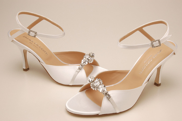 This unique sandal shoe combination is accented with a gorgeous band of Swarovski crystals and secured with a simple ankle strap and crystal buckle.