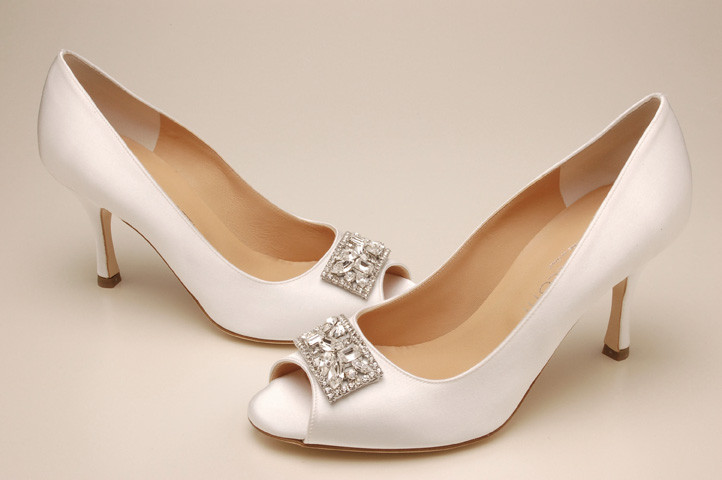 This stylish and elegant peep-toe pump is accented with a shimmering band of multi-shaped Swarovski crystals.