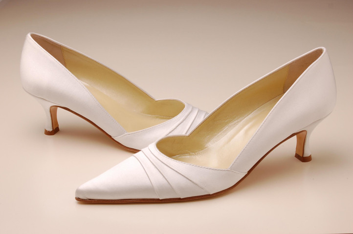 This elegant kitten heeled pump is detailed with triple pleats cascading over the graceful pointed toe.